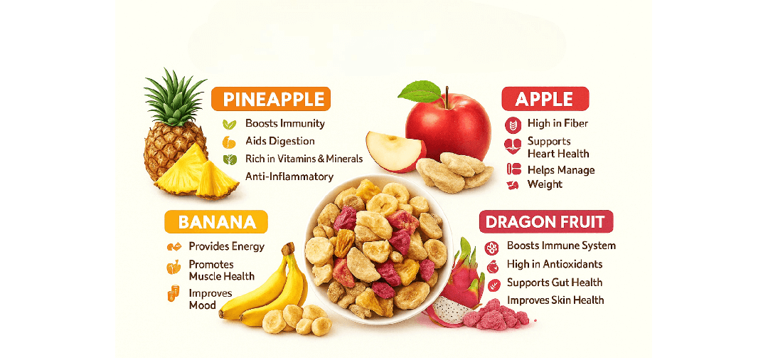 Freeze-dried fruits are crunchy, fun to eat, and non-sticky — making them perfect for kids’ lunchboxes or car rides. Parents love the convenience, and kids love the taste.