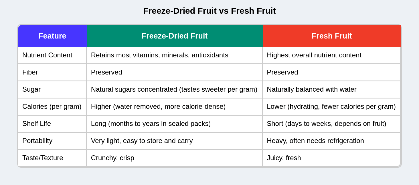 Because the moisture is removed, freeze-dried fruits last for months without refrigeration. They’re perfect for hiking, traveling, or simply stocking up your pantry.
