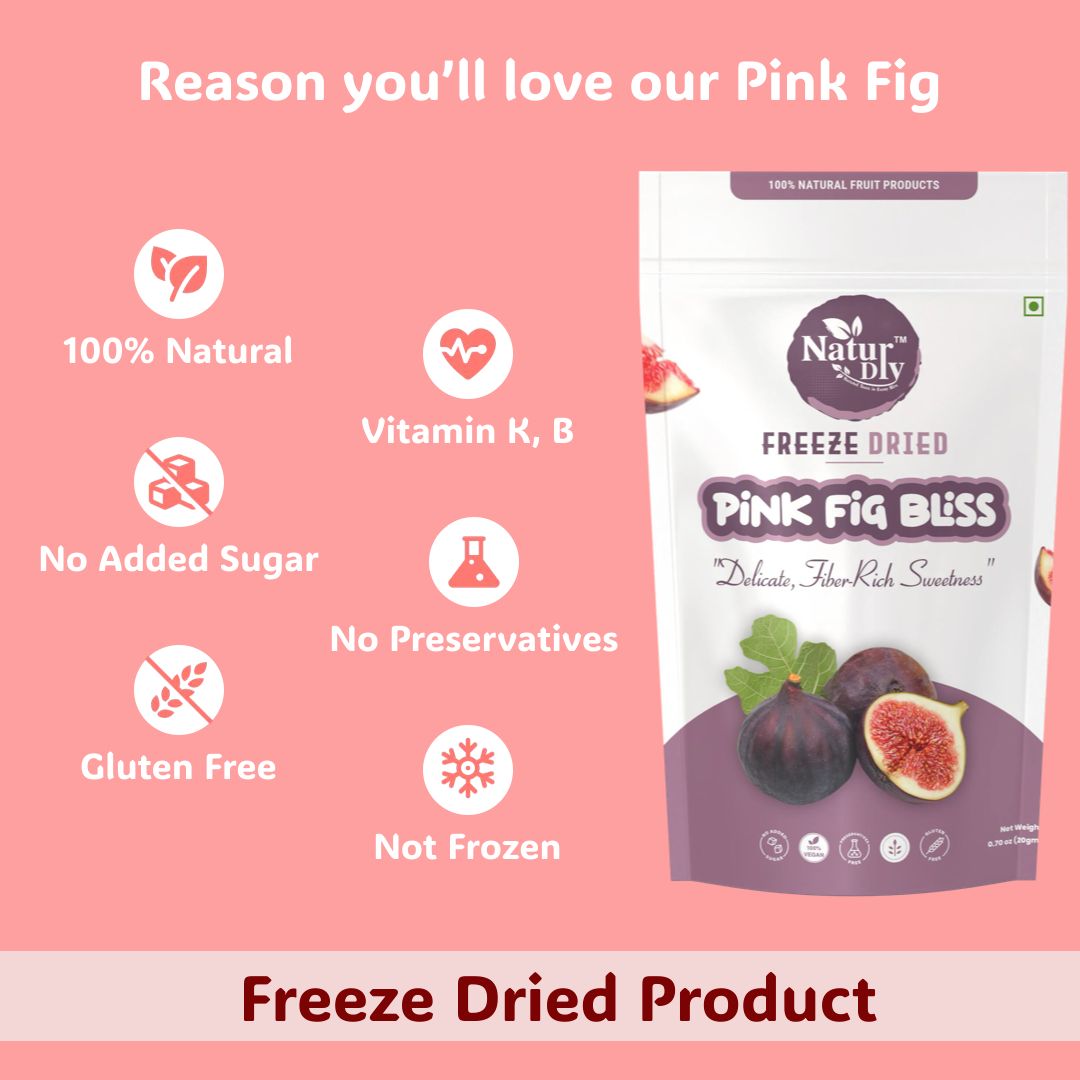 Pack of 1 Pack of 2 Pack of 3Discover the exotic flavor of pink fig bliss – made from 100% real figs, with no added sugar, preservatives, or artificial flavors. With their naturally sweet, floral taste and crisp texture, these fig crisps are rich in dietary fiber, calcium, potassium, iron, and antioxidants, helping support digestion, bone health, heart health, and immunity.